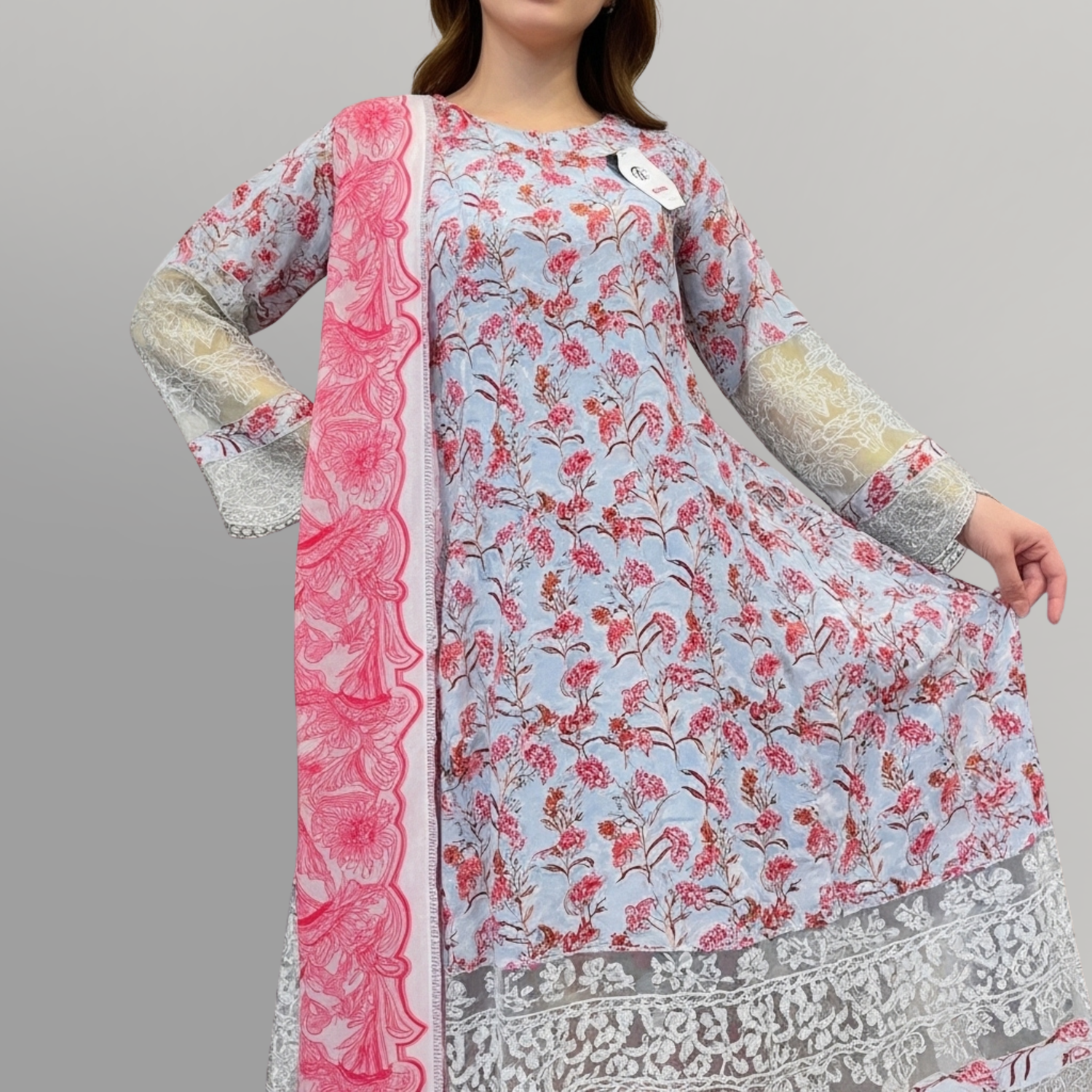 Rose Charm Embroidered 3-Piece Lawn Suit
